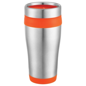 The Carmel 16oz Travel Tumbler features double-wall construction and stainless steel twist-on lid with a slide-lock drink opening. Hand wash only and follow any included care guidelines.