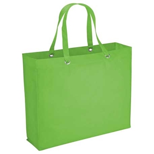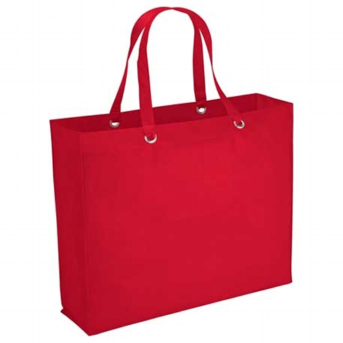 The Oak Non Woven Shopper Tote has an open main compartment with double 23 inch handles reinforced with metal grommets. Completely reusable it's a great alternative to plastic bags.