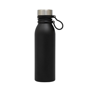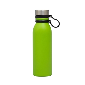 The Trek 20 oz. double wall stainless steel bottle has a sporty look and a beautiful power-coated finish. It has a steel-colored screw-top lid with a black silicone lid-tether strap that doubles as a carry handle. Take the Trek bottle on your next hike, run or camping excursion. It's easy to travel with and fits in most car cup holders. This bottle evenly distributes the temperature of your hot or cold drink as it has copper lining and is vacuum sealed. It maintains a comfortable exterior temperature so that you can hold your bottle while it keeps your cold drinks cold for 24 hours and your hot drinks hot for 12 hours. The Trek bottle is FDA compliant and BPA free.